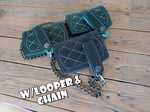 These limited edition midsized wallets feature a handstitched diamond tuck pattern in three color options Sublime Green, Dark Purple, and Turquoise.