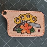 These single slot card holders can comfortably hold five cards and come with a grommet for adding a chain.